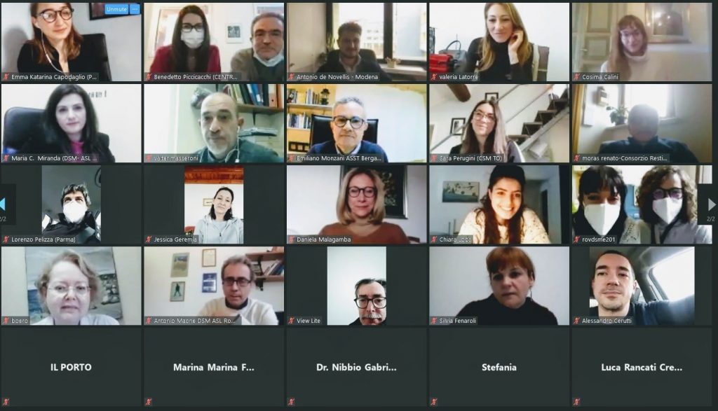 Il dott. Giovanni de Girolamo – PI del progetto (IRCCS Fatebenefratelli di Brescia)  ha mostrato lo stato di avanzamento del progetto, mostrando come ad oggi sia stato reclutato il 69% del campione totale previsto (=600 pazienti ambulatoriali e residenziali) per l’obiettivo 1 e 2, e sia stata raggiunta quasi pienamente la soglia di reclutamento per lo studio ecologico (obiettivo 3). Clicca qui per scaricare la presentazione